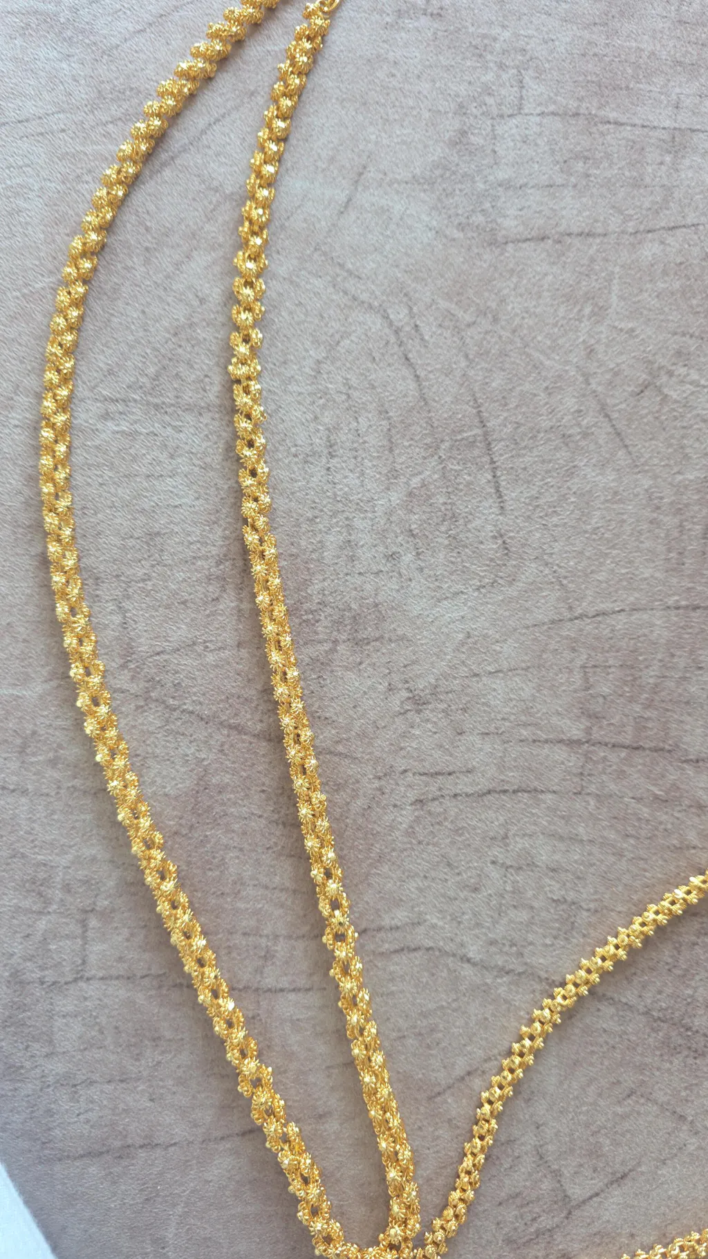 The design is delicate yet striking, with beautifully detailed links that catch the light perfectly. It has a rich, elegant gold finish that looks very premium and complements both traditional and modern outfits.