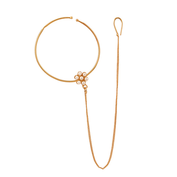 White Beaded Flower Nose Ring (Nath)